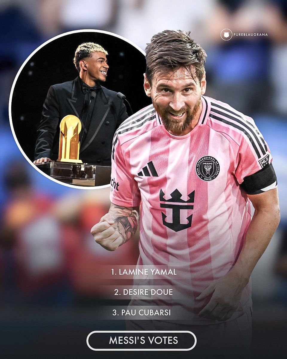 金球奖主办方《法国足球》公布了2025年科帕奖投票详情大通速配,梅西的投票顺序为亚马尔、杜埃、库巴西。